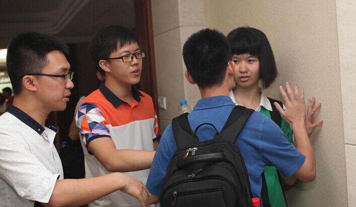 原来,成绩一出来,清华招生工作人员已经抢先一步,将考生和家长邀请到一个秘密的地方进行商谈,后来因为要召开发布会才带着考生出来接受采访,没想半路杀出一个强有力的竞争对手。与此同时,“北大哥”可能早预料到被人捷足先登,但亡羊补牢,为时不晚,于是得知发布会考生将要出现,便再召集了一名同事一起前来占场,“我们只是想找她单独谈谈有何不可?”